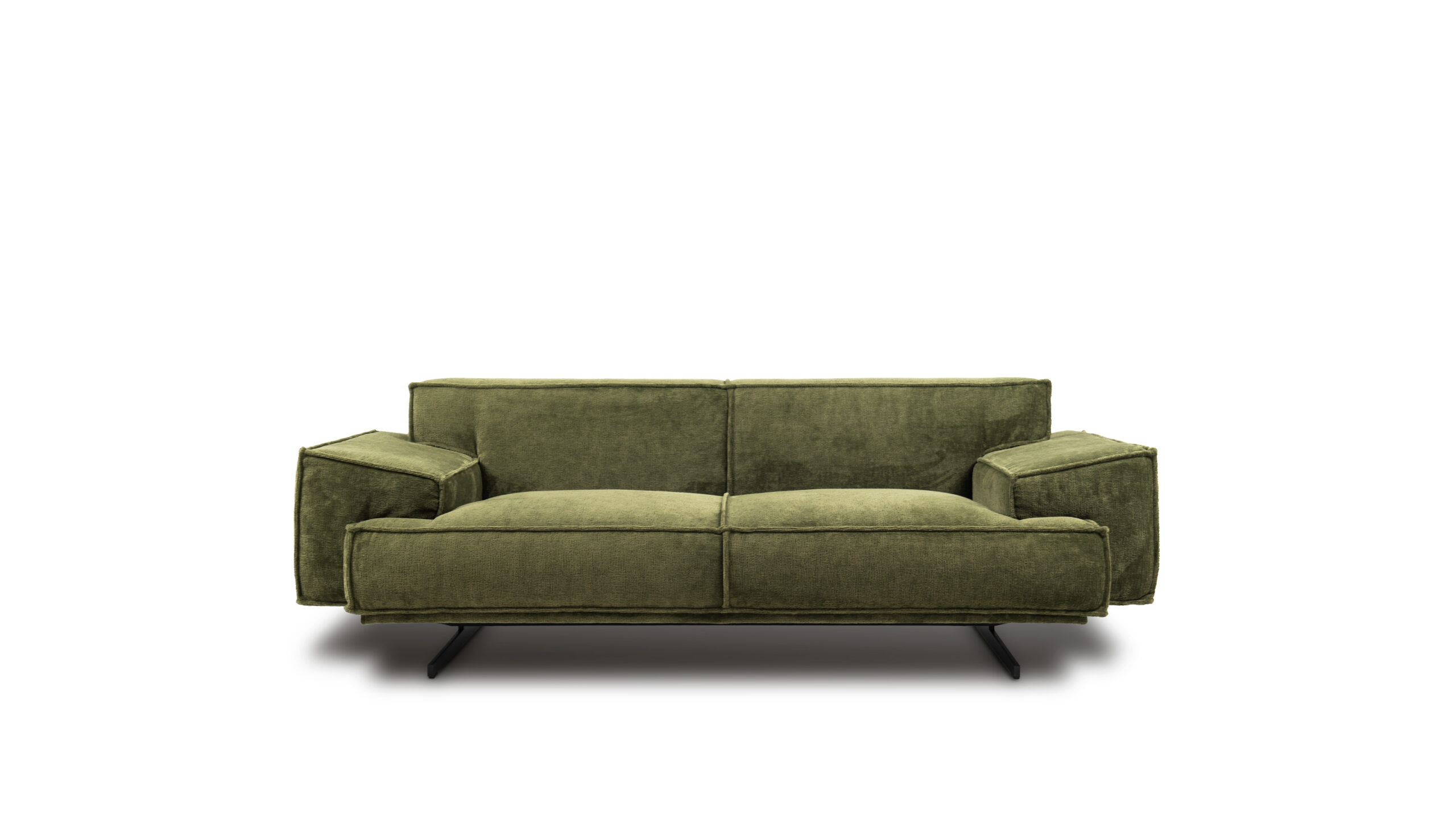 It is defined by its strong, architectural solid, which balances between attention focused on enhanced armrests and light metal legs that support this massive solid above the ground. The designer managed to maintain the right proportions, at the same time ensuring a perfect balance of style and comfort. The splendor is further enhanced by geometric lines of handmade tailoring.