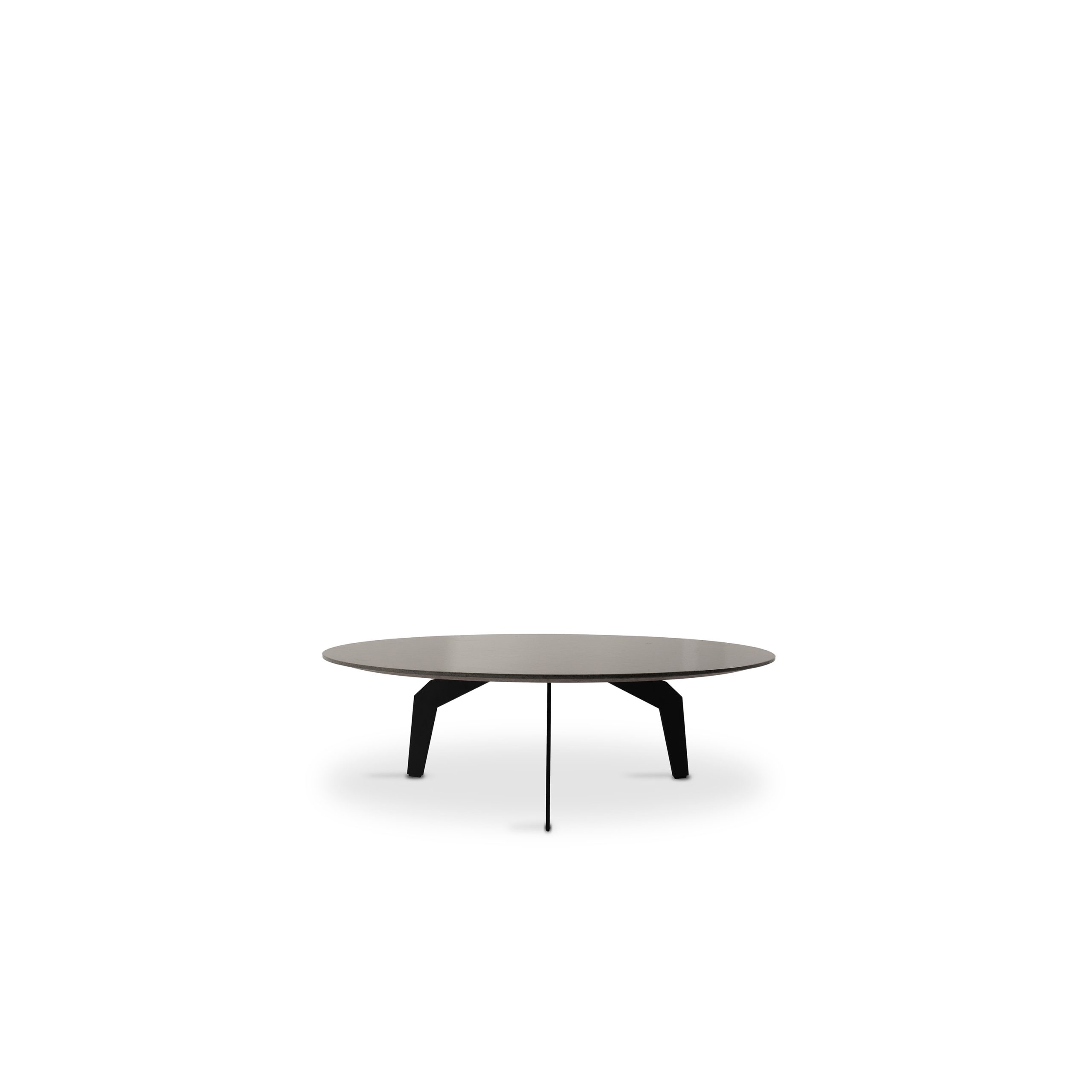 Blat wsparty jest na trzech metalowych nogach o futurystycznej, dynamicznej formie, przywodzącej na myśl konstrukcję cybernetycznego pająka.