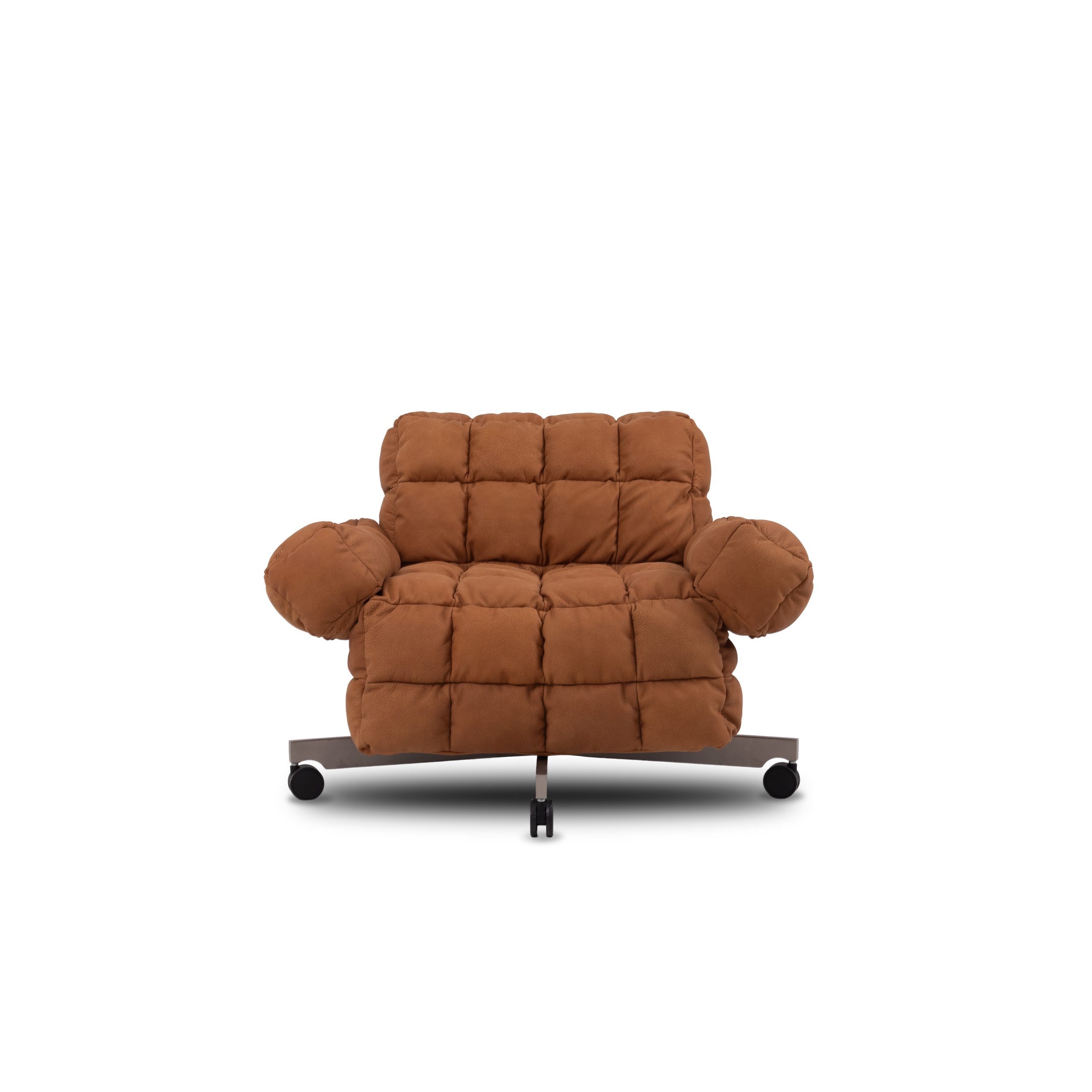 Parfait będzie idealnym, obrotowym fotelem wypoczynkowym, zapewniającym doskonały relaks. Obrotowa podstawa z innowacyjnymi kółkami zapewnia zwrotność fotela, jednocześnie dodając mu wyjątkowego wyglądu. Parfait został zaprojektowany tak, aby był delikatny i lekki, tak jak konsystencja deseru, od którego pochodzi jego nazwa. Łatwo go rozpoznać po podstawie na kółkach, kątowych podłokietnikach i miękkiej, pikowanej tkaninie. Parfait to wynik eksperymentów w programie Marvelous Designer. Celem była miękka, wygodna, pikowana forma i puszysta estetyka.
