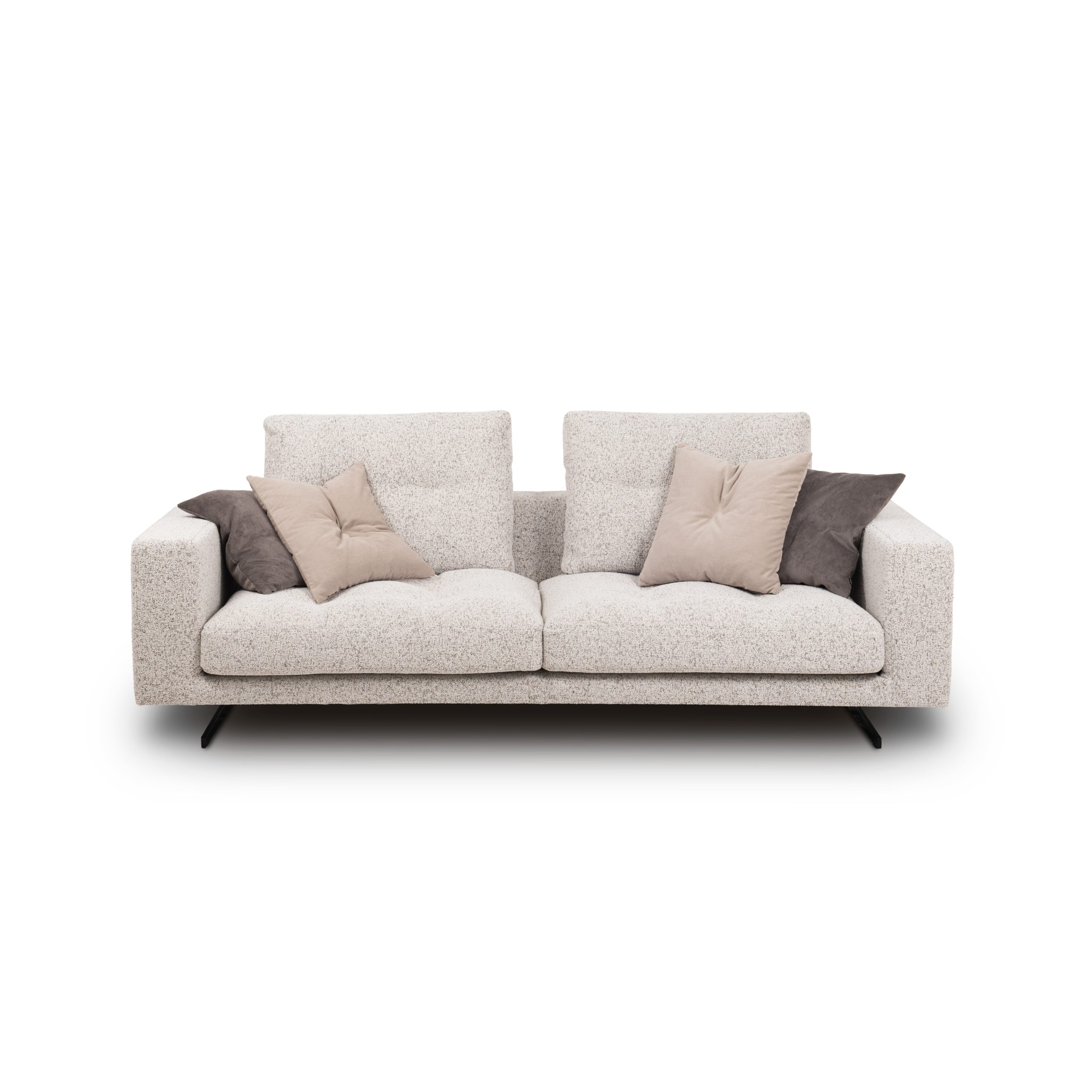 Komfort użytkowania zapewniają pasy elastyczne oraz zaawansowany system SoftLayers™, łączący starannie dobrane pianki elastyczne z miękkim wypełnieniem z ekopuchu. Całość dopełniają poduszki oparciowe, które podnoszą wygodę codziennego wypoczynku. Sofa wsparta jest na metalowych nogach w kolorze czarnym, nadających formie nowoczesnego, industrialnego akcentu.