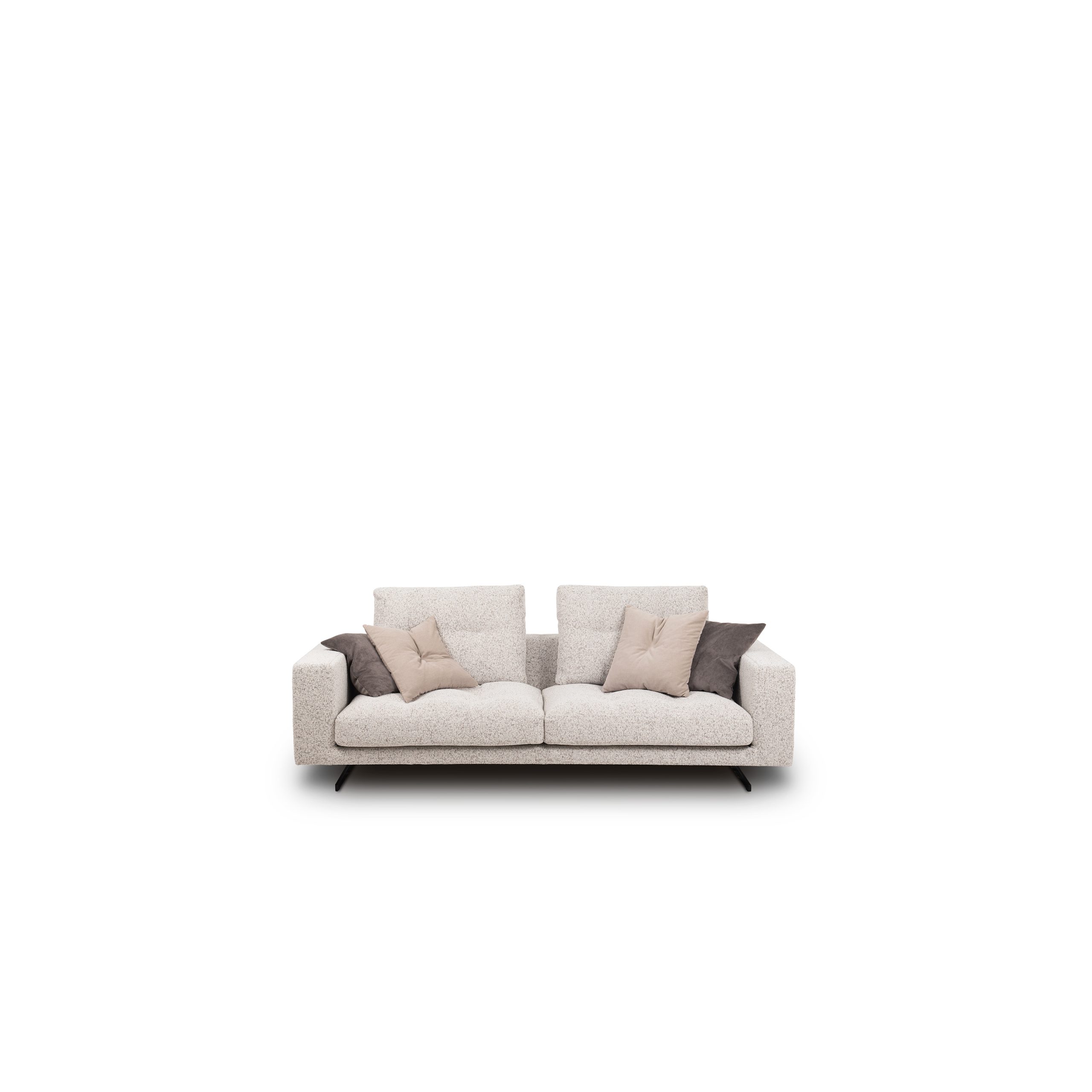 Komfort użytkowania zapewniają pasy elastyczne oraz zaawansowany system SoftLayers™, łączący starannie dobrane pianki elastyczne z miękkim wypełnieniem z ekopuchu. Całość dopełniają poduszki oparciowe, które podnoszą wygodę codziennego wypoczynku. Sofa wsparta jest na metalowych nogach w kolorze czarnym, nadających formie nowoczesnego, industrialnego akcentu.
